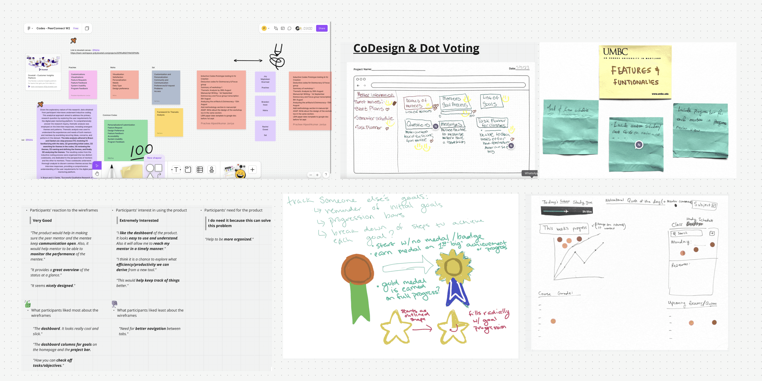 To deepen our qualitative analysis, we gathered different types of artifacts from the workshops. The real magic came from the co-design sketches. These were student-created dashboards showing what they wanted. They were visual expressions of mental models & their priorities. By analyzing these sketches side by side with survey responses, we were able to spot recurring themes, cluster insights, and built a solution.