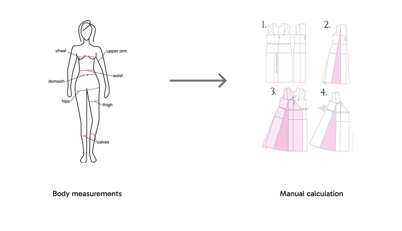 One of the major challenges in the current garment production process is the mismatch between body measurements and the actual fabric required. The fabric needed often varies based on the outfit’s design, fit, and the stretch factor of the material. The intuitive judgement by the designer leads to frequent miscalculations which results excess or insufficient fabric.