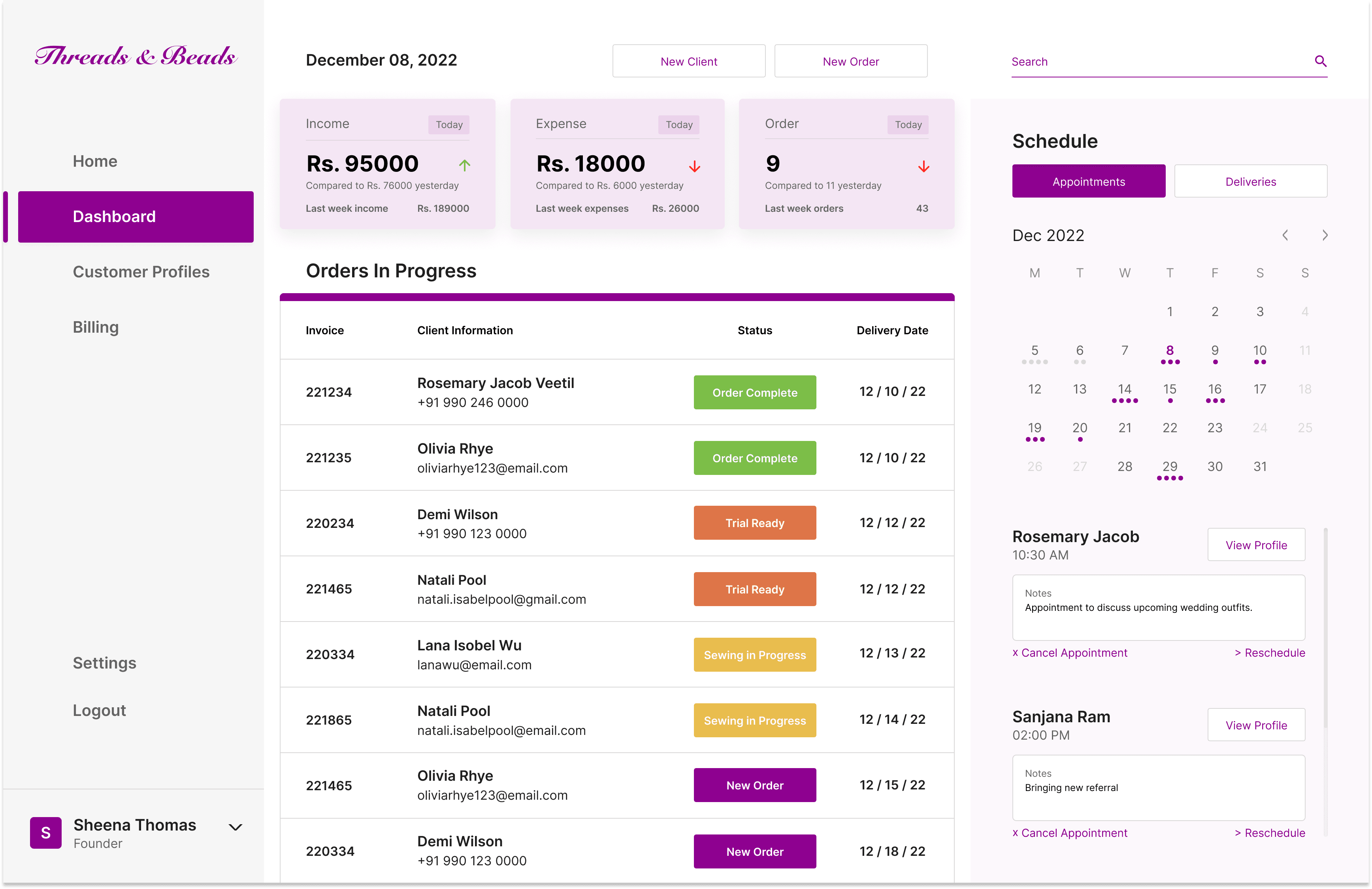 This is the final dashboard we designed for Threads & Beads.
