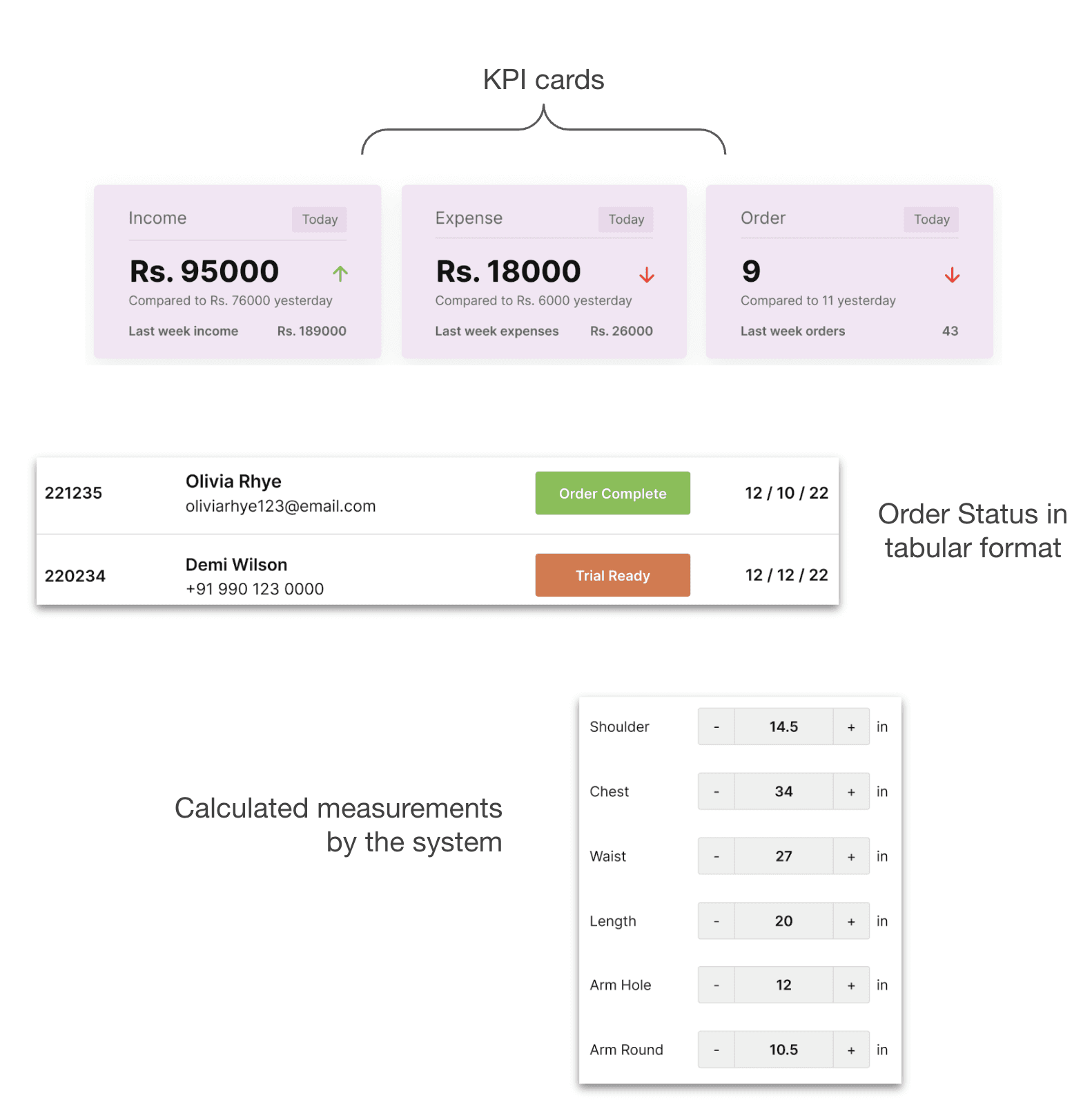 We also used Color-coded tags (like “New Order”, “Trial Ready”) act like physical labels in tailoring studios.